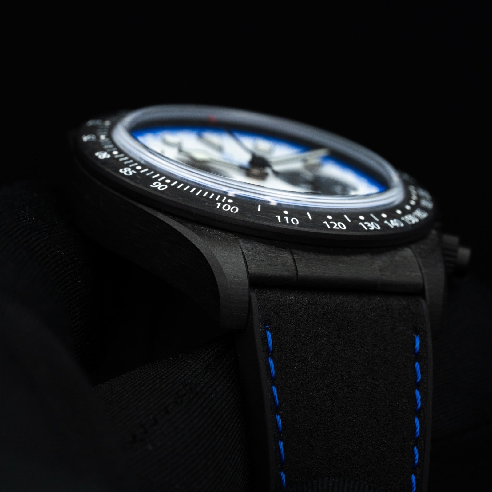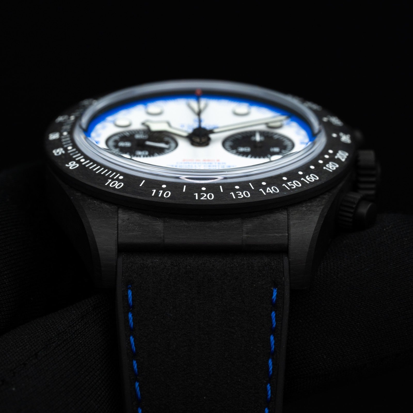 A modern and stealthy evolution of the Black Bay line, this watch features a lightweight 41mm carbon composite case with a matte black finish and unidirectional bezel. The textured black dial is accented by bold luminous markers and red text.